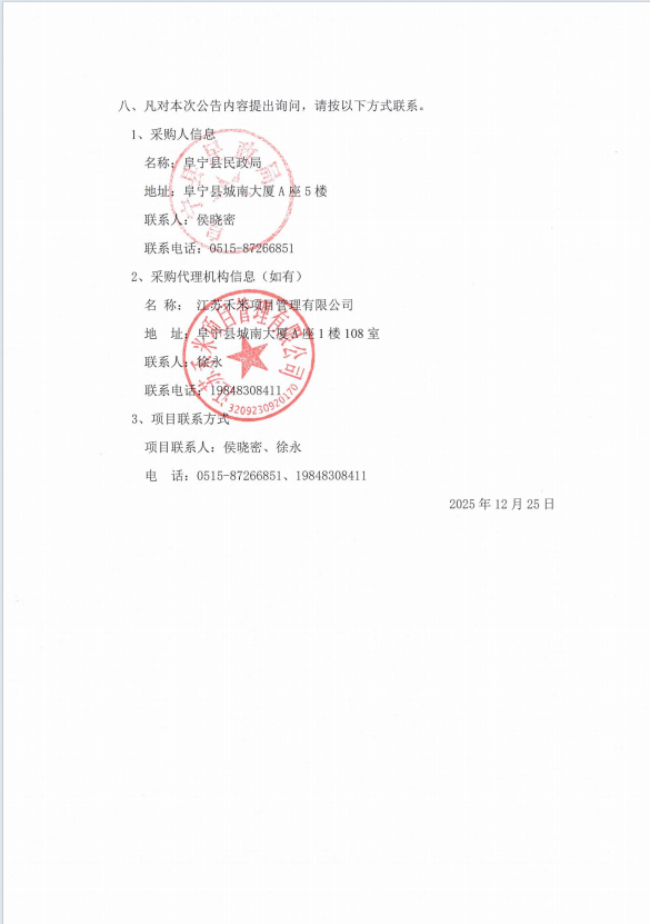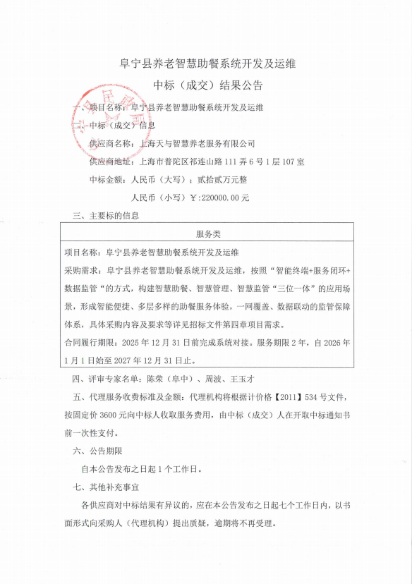 阜宁县养老智慧助餐系统开发及运维中标结果公告