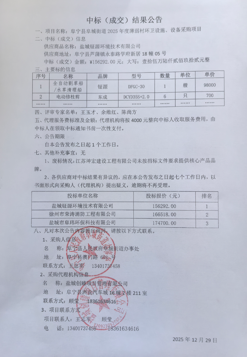 阜宁县阜城街道2025年度薄弱村环卫设施、设备采购项目