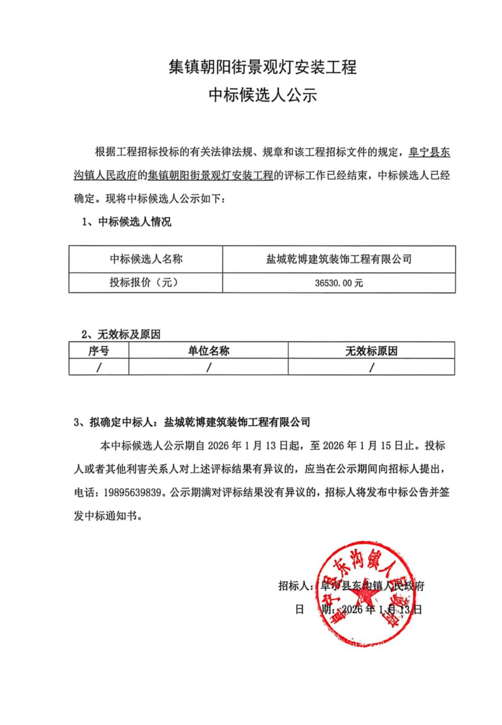 集镇朝阳街景观灯安装工程中标候选人公示