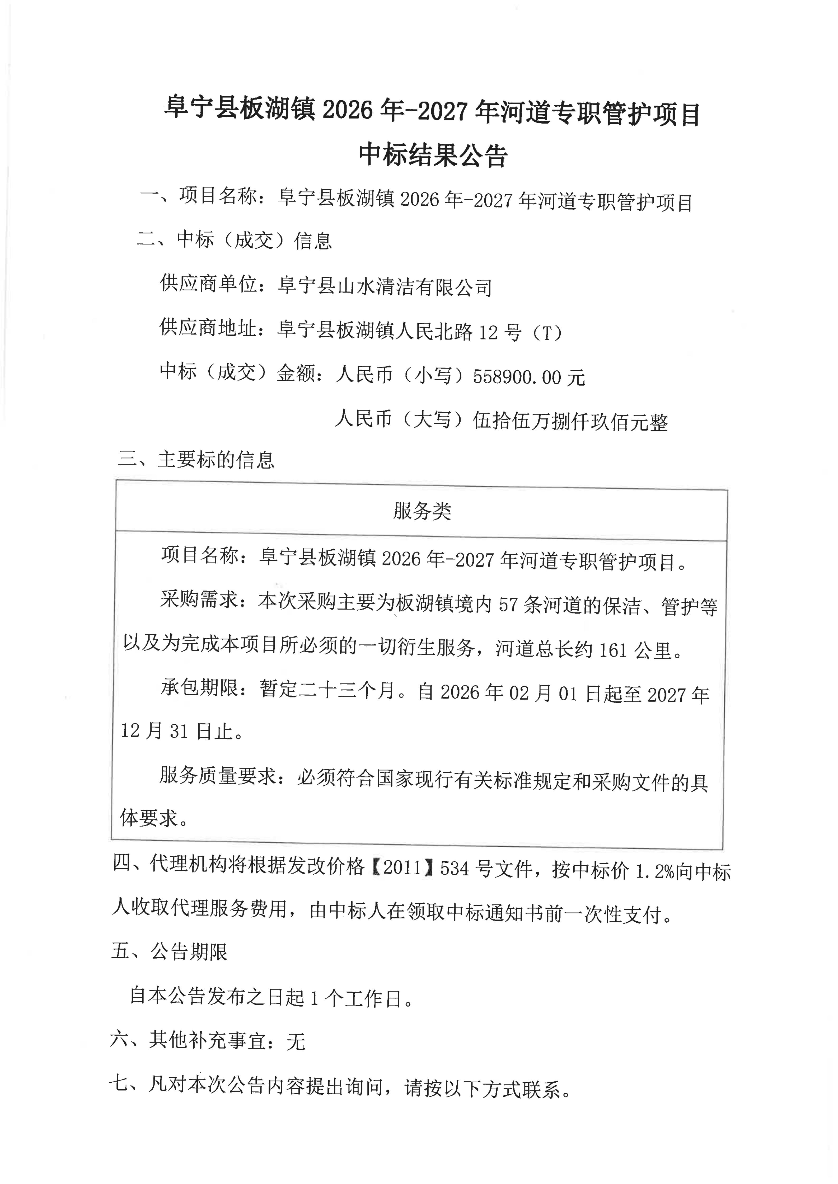 阜宁县板湖镇2026年-2027年河道专职管护项目