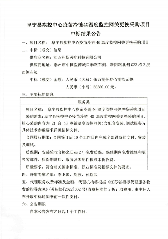 阜宁县疾控中心疫苗冷链4G温度监控网关更换采购项目