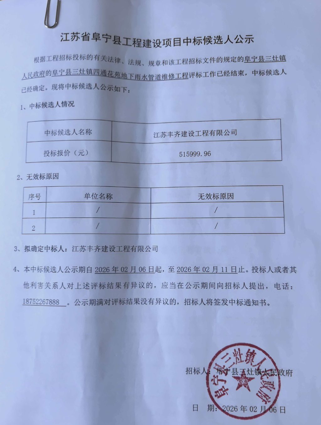 阜宁县三灶镇四通花苑地下雨水管道维修工程