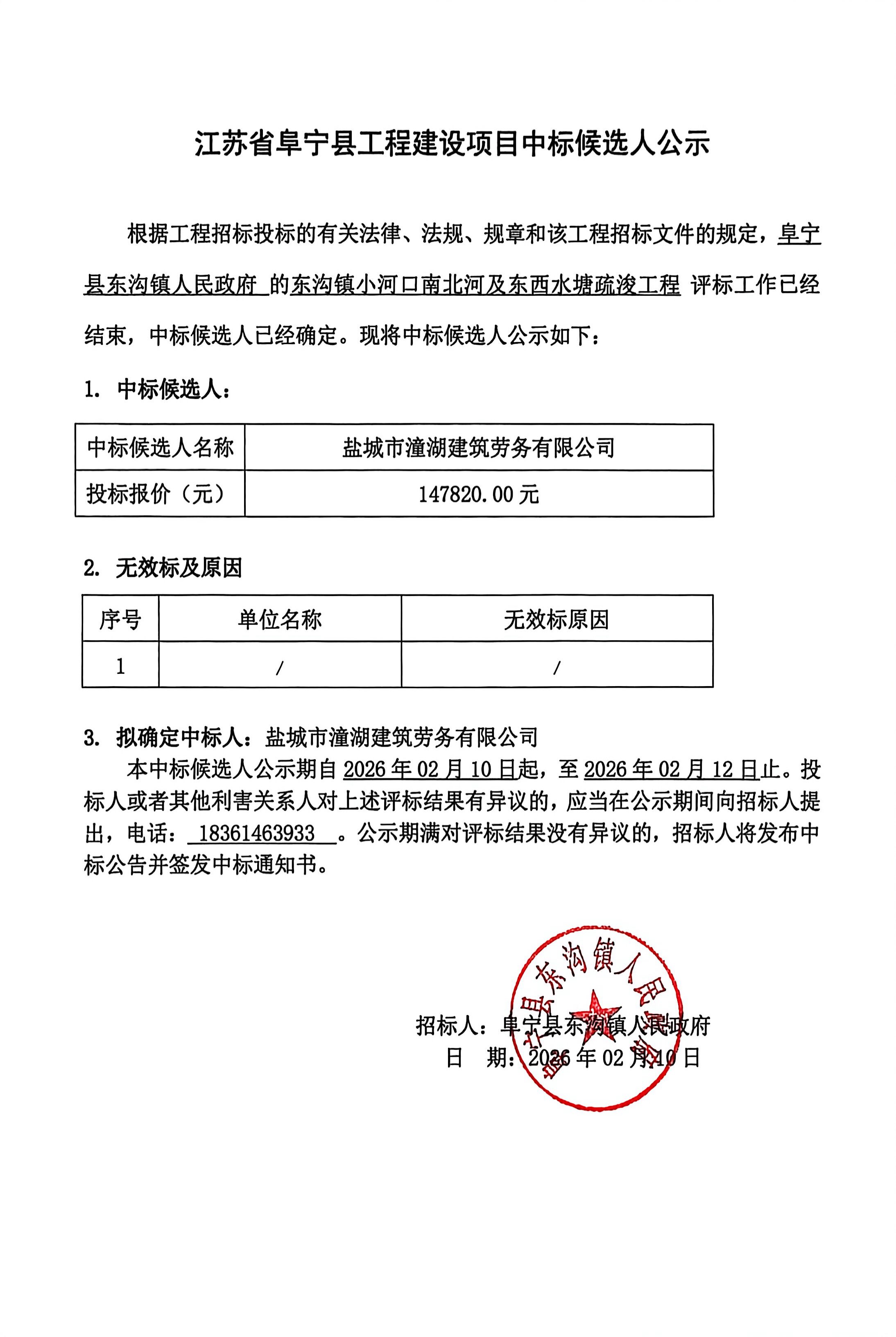 东沟镇小河口南北河及东西水塘疏浚工程