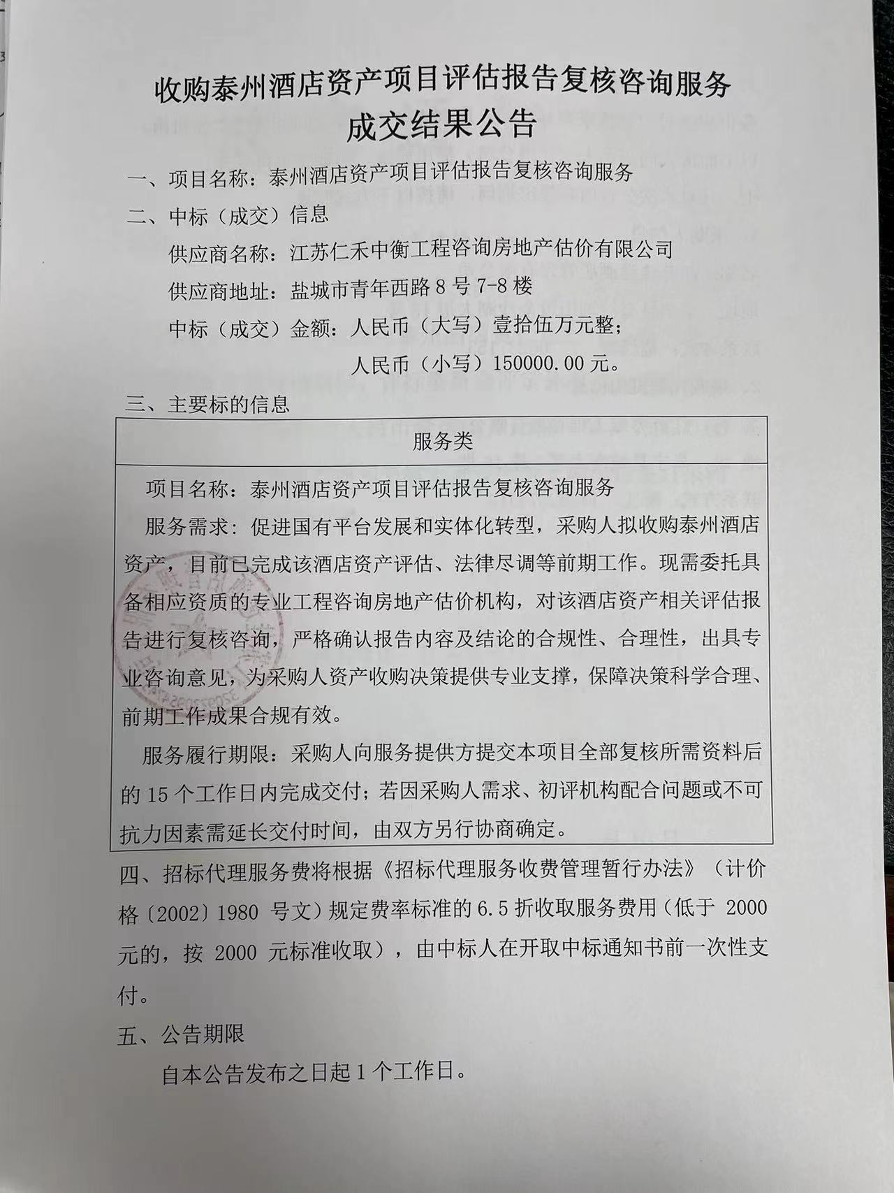 收购泰州酒店资产项目评估报告复核咨询服务