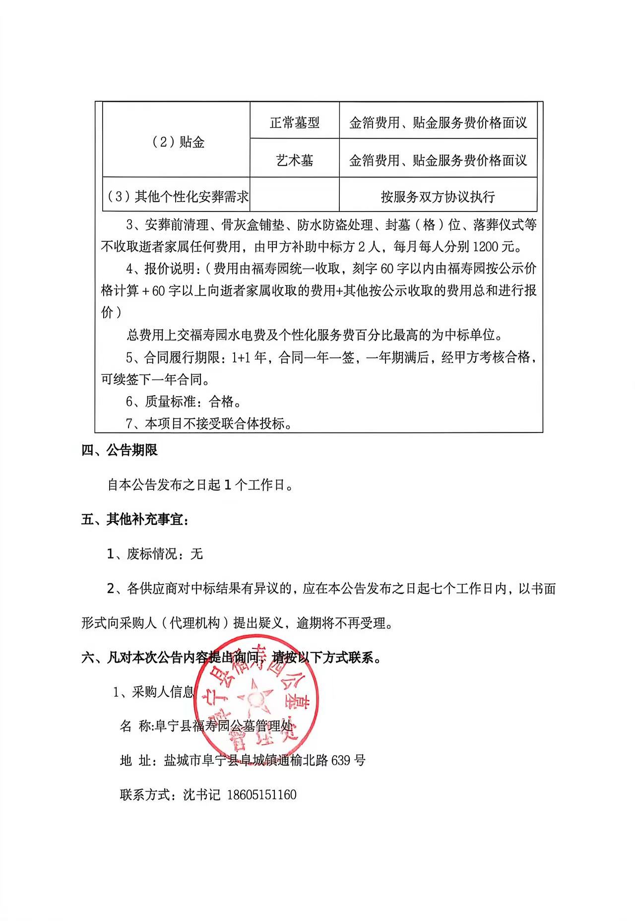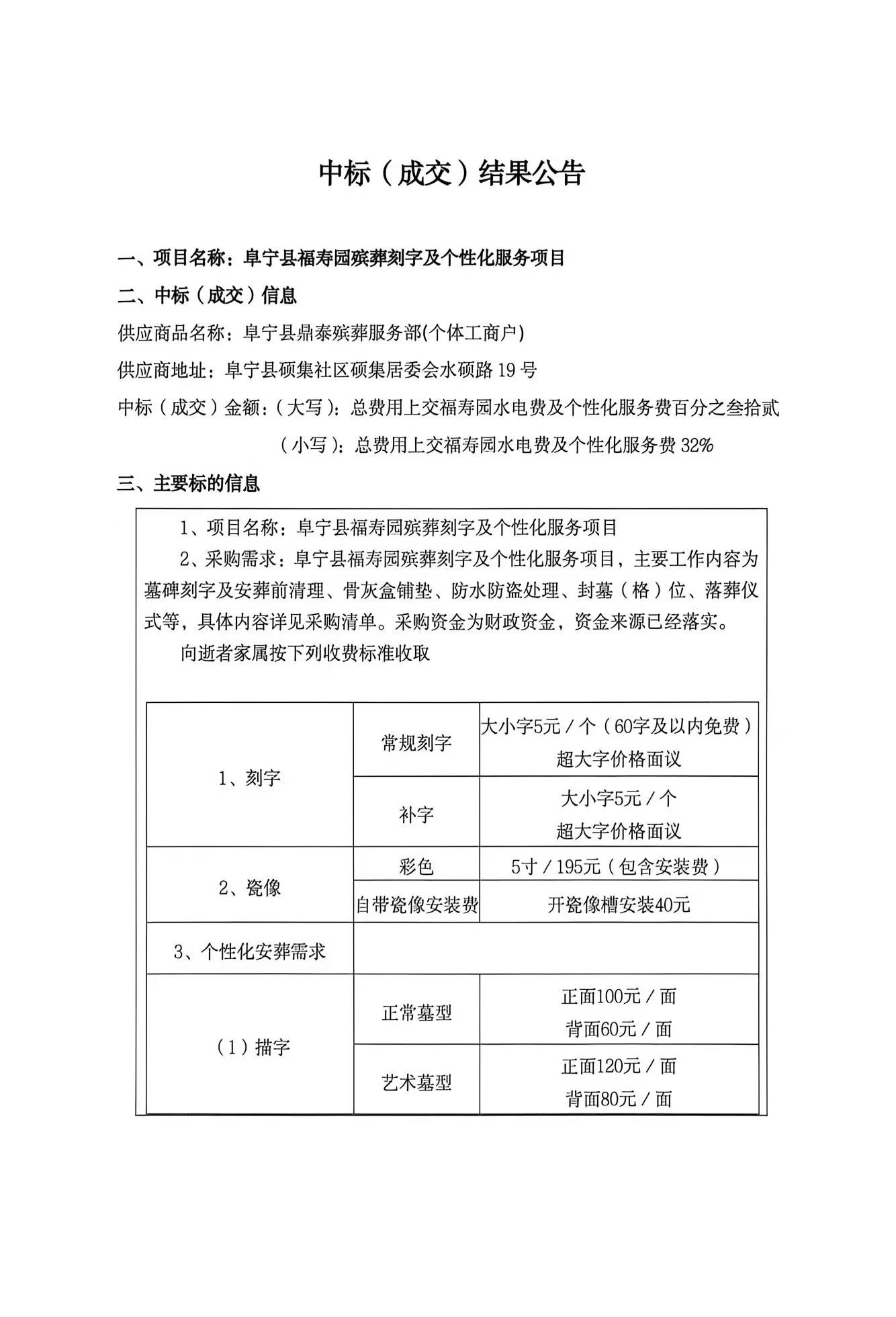 阜宁县福寿园殡葬刻字及个性化服务项目 中标(成交)结果公告